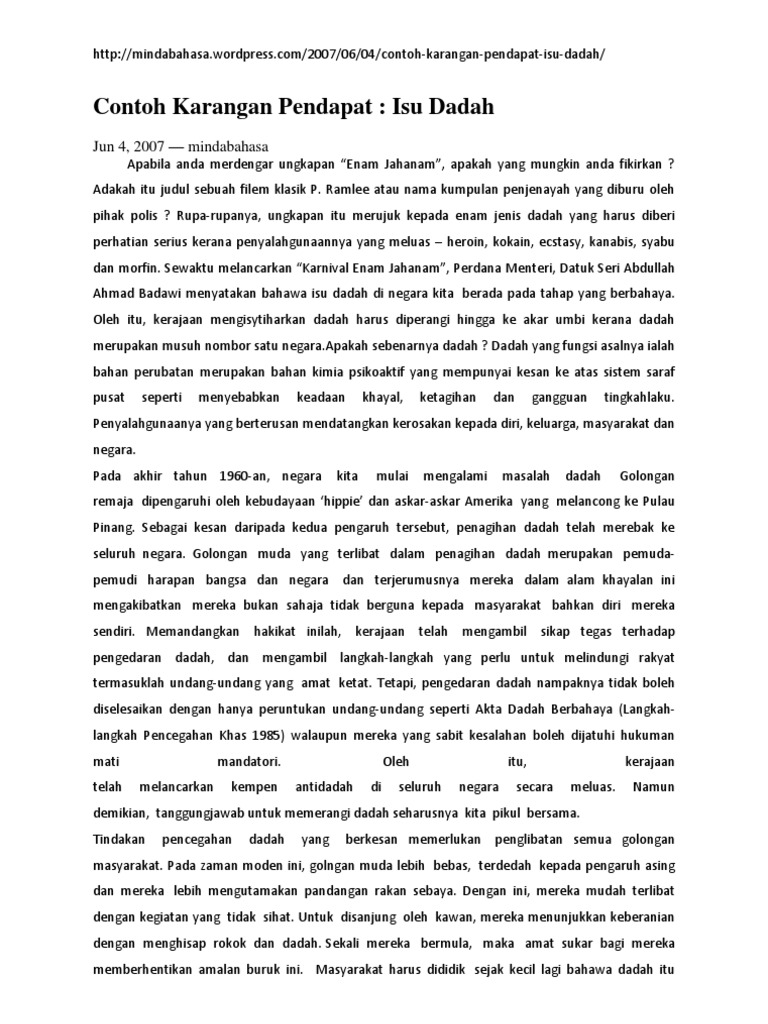 Contoh Karangan Pendapat Dadah Pdf